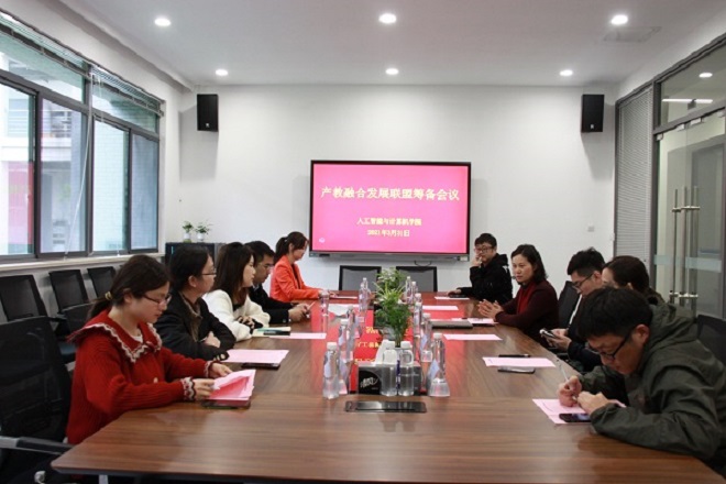 招聘会结束后,学院与十家优质企业召开了产教融合发展联盟筹备会议。在会上提出产教融合发展联盟将通过共筑合作平台、共育师资力量和共创科技项目等形式开展合作。最终实现共同发展,形成人工智能领域人才培养和输送的强大方阵。
