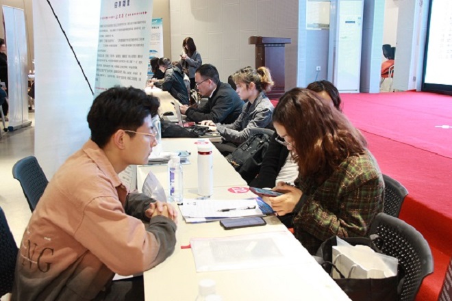 毕业生与企业交流