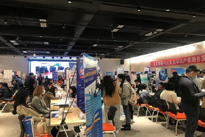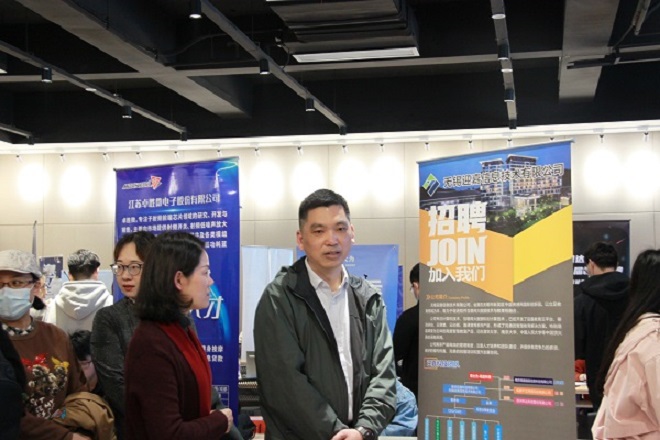 3月31日下午,我院2021年春季招聘会在北区大学生活动中心举办。无锡先进技术研究院、恒为科技(上海)股份有限公司、蓝深远望科技股份有限公司等66家优质企业参会,提供了近350个岗位,吸引200余名我院学子前来应聘,共收到学生简历500多份。学院党委书记张华、党委副书记陈祎、毕业生辅导员杜磊、王牧在招聘会现场与公司招聘人员以及应聘同学沟通交流。