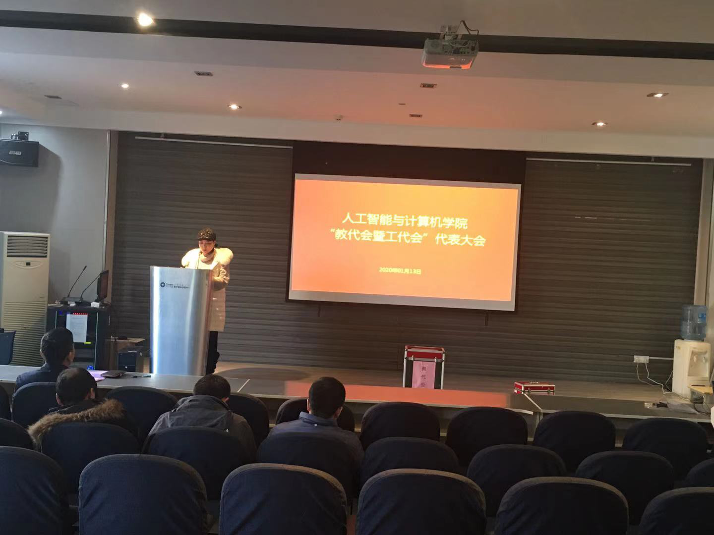 1月13日下午,我院在智能楼116报告厅召开第一届两代会,并进行二级教代会执委会委员和工会委员会委员的选举,学院全体两代会代表参会,会议由院党委副书记陈祎主持。