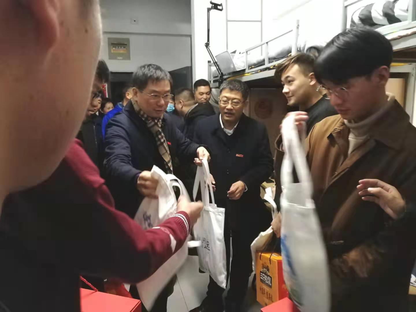 陈卫校长一行来到梅园学生公寓,详细了解大家的学习生活情况,并亲手送上慰问品。陈校长说,同学们因为疫情、科研等原因选择就地过年,为国分忧,虽吃不上母亲忙活的年夜饭,听不到父亲提起酒杯时的唠叨,但有这么多江南人陪你们一起过年,体味大家庭的温暖,这必将是一次难忘且美好的回忆。陈校长表示学校将提供4天的免费春节佳肴,确保同学们舒心过大年。陈校长也鼓励留校学生做好时间规划,多和父母报平安,常与老师沟通交流。