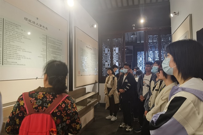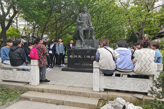 4月18日下午,特邀组织员滕颖与数媒2002班团支部全体成员共同举行“走近四史、致敬伟人”团日活动,行程伊始,师生共同参观顾毓琇故居,走近文学大家;而后参观秦邦宪故居,了解伟人生平;最后走过小娄巷,体验无锡文化。在参观过程中,滕颖老师结合党史、新中国史、改革开放史、社会主义发展史向团支部成员介绍了顾毓琇、秦邦宪的生平事迹和历史功绩。与此同时,滕颖老师重点强调了顾毓琇家族中人才辈出,离不开族人之间的相互促进,并借此鼓励同学们勤学慎思、互帮互助;也强调了秦邦宪的“自我批评”精神,告诫同学们,在学习生活中要学习党员“批评与自我批评”的精神,常自省、常反思。