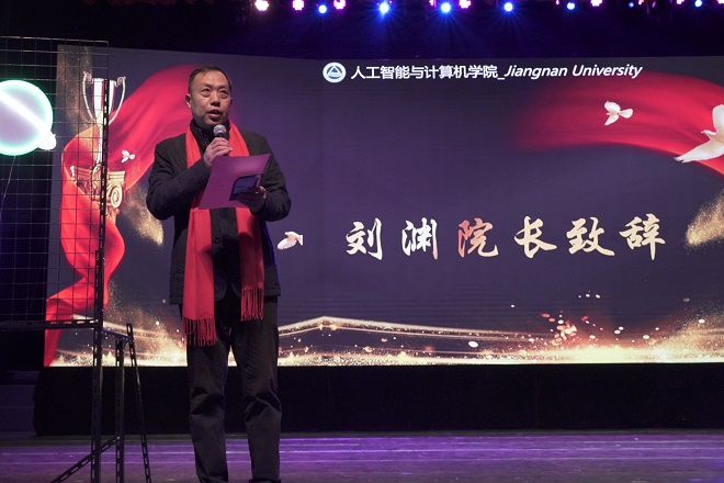 晚会在拳击猫乐队的歌声中拉开帷幕,动感的节奏瞬间点燃全场师生的热情。首先,我院院长刘渊上台致辞,他回顾我院2021年在全院师生共同努力下取得的突出成绩,同时希望2021级新生坚定理想信念、心系伟大祖国、勇于砥砺奋斗,求真学问、练真本领,迎接精彩的大学生活。在随后的表演中,院学生会成员带来舞蹈《最炫智能风》,充分展现了我院学子朝气蓬勃的青春风采;各年级辅导员老师和研究生朗诵《请党放心,强国有我》献礼建党百年。紧接着,学院领导和老师们齐唱《三百六十五个祝福》,向台下师生分发新年糖果,院党委书记张华代表学院党政向全体师生寄语新年祝福,将晚会推向高潮。学生们自编自演的《芳华》、《单车占争》、《骏儿的一天》和《监考老师》等小品在诙谐幽默的演绎中有力彰显了我院学子珍惜青春时光,不负祖国期盼的坚定信念,迎来现场阵阵掌声。舞蹈《beat it》、十佳歌手的《这世界那么多人》、过载树莓乐队的《Don’t Look Back in Anger》、研究生的歌舞表演《breaking齐舞Part1》和《One of a kind》打动全场师生,同学们的实力唱跳将我院学子多才多艺、能歌善舞的超凡风采展现的淋漓尽致。晚会现场还穿插了充满趣味性的抽奖活动,营造了热烈浓厚的氛围。最后,伴随着童年歌曲的优美旋律,晚会在新生副班带来的《刻在DNA的童年金曲》中落下帷幕。